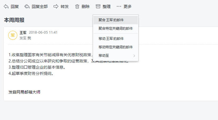 这里说的,并不止是通过网易邮箱大师管理其他第三方邮箱的功能——这是基本操作——而是它将管理能力下沉到了邮件层面。