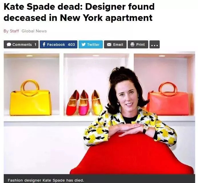 6月5日美东时间10:56分,美国知名时尚品牌 Kate Spade 的创始人,在自己的纽约公寓内上吊身亡。根据警方分析,现场种种迹象表明,Kate Spade 极可能为自杀。