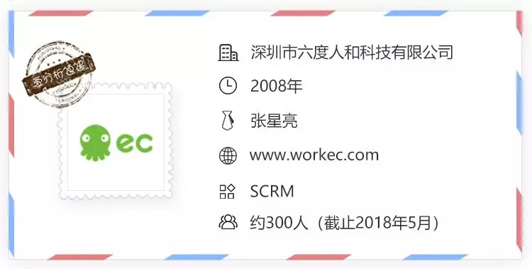 六度人和(EC)成立于2008年,在2008年到2013年期间,一直为客户提供在线客服类产品。随着社交网络的兴起,公司在2014年开始内部二次创业,业务从客服产品转向SCRM(社交化客户关系管理)。