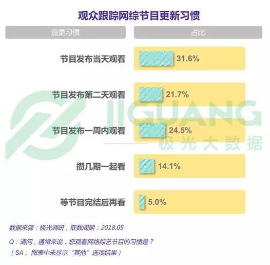 超半数的网综节目观众会在节目发布两天内进行观看,接近一半的观众不会这么热情追更。