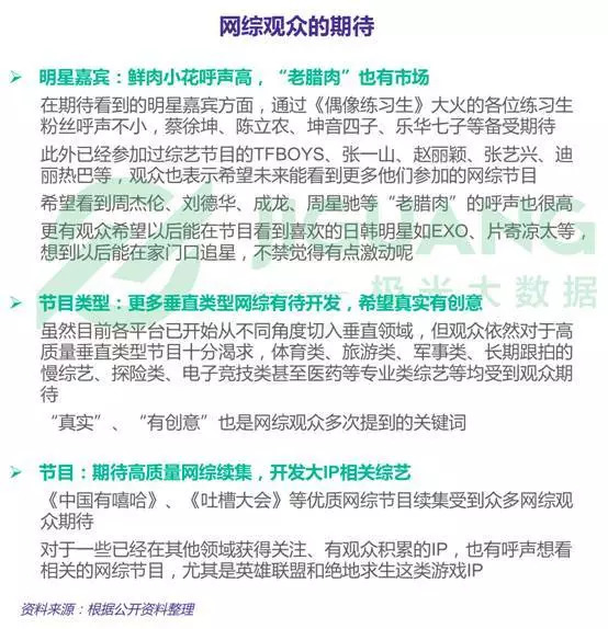 网综市场发展,离不开对于观众的把握。观众并非被动地观看网综,对于明星嘉宾、节目类型等,也有自己的期待。