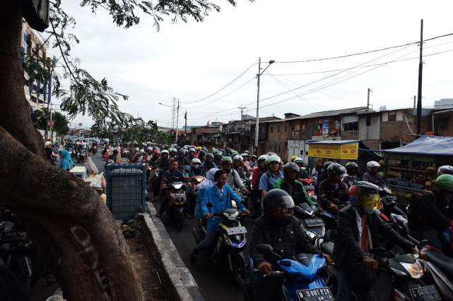 雅加达的拥堵全球出名,也因为此,几乎每个家庭都有摩托车作为代步工具。于是,在上下班高峰期,规模庞大的摩托车车队浩浩荡荡地从身边驶过,成为雅加达的一道街景。