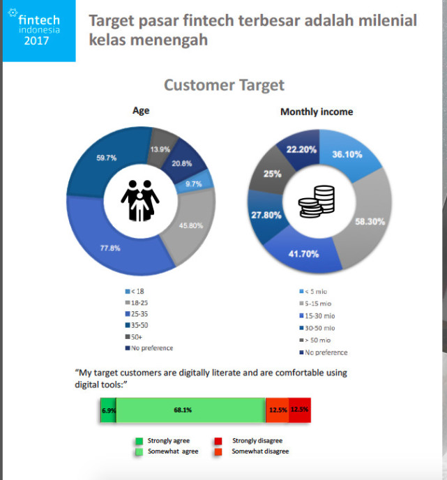 该报告还深入研究了印尼科技金融用户群体特征:25—35岁,月收入在500元—1500元人民币,接触移动互联网的用户。