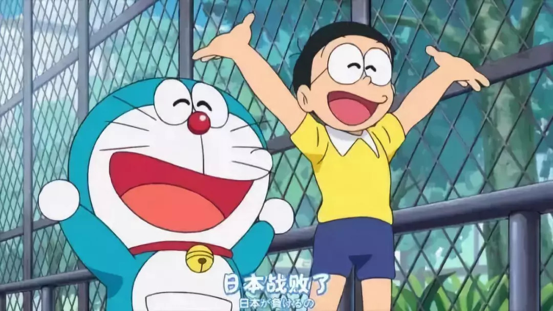 所以他也写战争与和平,让大雄和哆啦A梦欢呼着说:“日本战败了!”