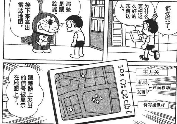 给别人佩戴上这一徽章,就可以通过雷达定位其方位。出现于1975年的《哆啦A梦》漫画与1979年的动画版中。