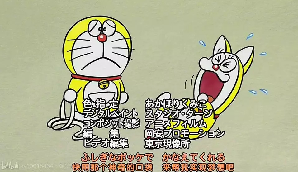 比如哆啦A梦的外壳本来是黄色的,后来因为被老鼠咬掉耳朵过度悲伤而被泪水漂去了黄漆,露出了蓝色的底色(这也是为什么妹妹哆啦美是黄色的)。