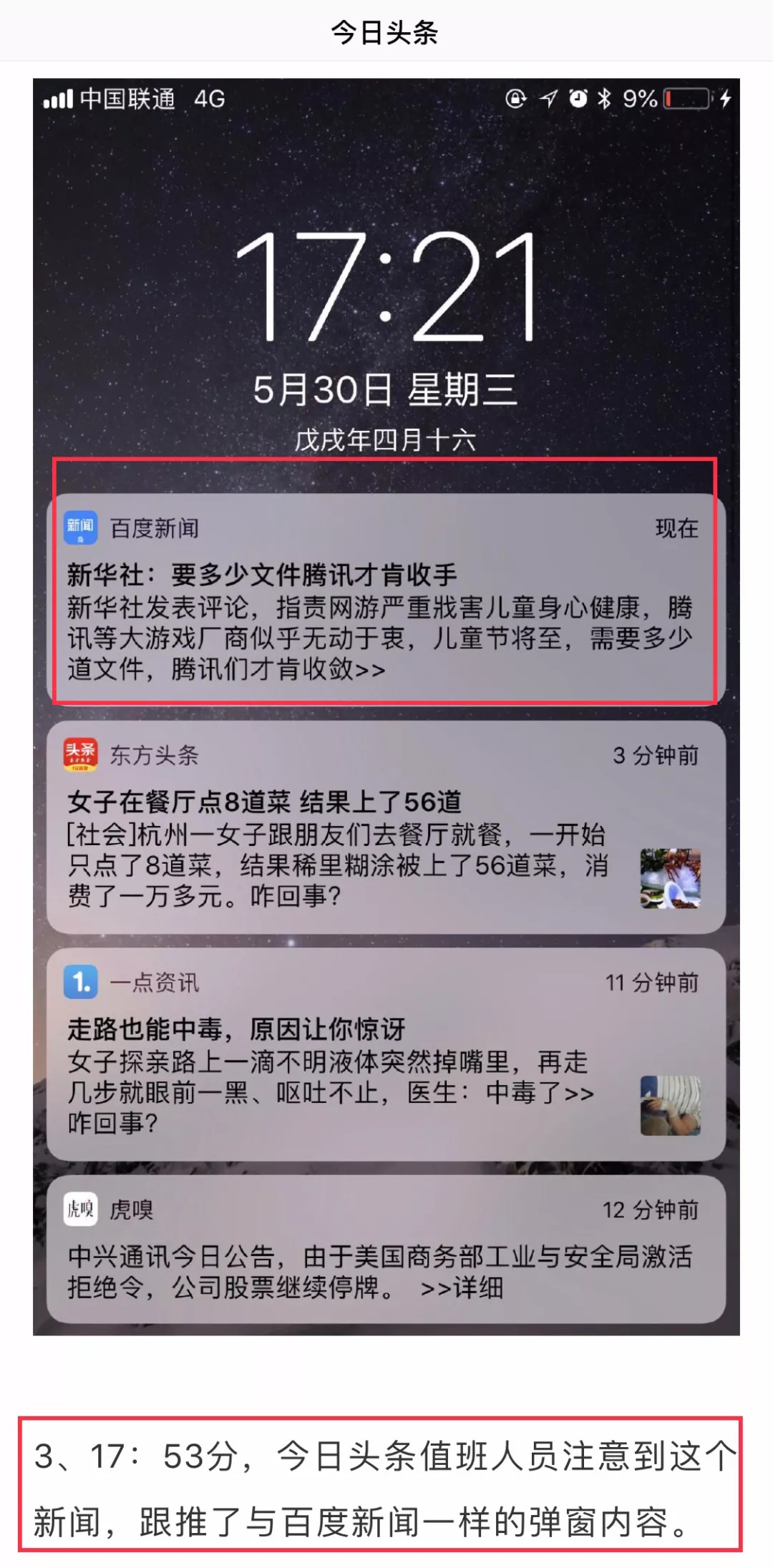针对上述事件,今日头条回应称,百度新闻弹窗修改了标题,把发布者从“新华网”改为“新华社”欠妥,从内容上看,并没有改变原意,也符合新闻报道的方式。故而值班人员跟推。