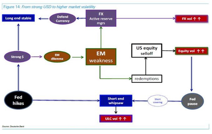 Patel认为,导致新兴市场资产近几月来被不断“血洗”的原因不是美联储连续加息,而是美国的其他两项政策 —— Patel称之有如“双重打击”—— 一是美联储缩减资产负债表,使美元融资吃紧;二是由于美国大规模减税和财政支出增加,使美国财政部大幅增发美国国债,又进一步吸走美元流动性。