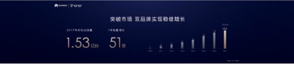 历数来看,国内手机品牌当中,只有“华为+荣耀”的双品牌运作比较成功。余承东在发布会上表示,“华为+荣耀”七年来销量递增51倍,2017年全球销量高达1.53亿台,全球销量排名第三,中国销量排名第一。在国内市场,荣耀已经超越小米成为第一互联网品牌,双品牌并举,销量同时名列前茅。从满意度情况来看,益普索2017年品牌调研报告显示,“华为+荣耀”在中国用户满意度稳居第一,苹果第三。