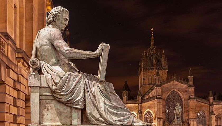 在休谟的文人生涯中,他注定是苏格兰启蒙思想家这个群体中的“异端”。在休谟有生之年,他发表了《宗教的自然史》《论神迹》等“挑衅宗教神学”的论文。临终之际,休谟念念不忘他的《自然宗教对话录》,央求好友斯密在合适的机会发表。但谨慎的斯密拒绝了这个请求。在十八世纪的苏格兰,人们总是如此谨慎,尽管温和派主张宗教宽容,但这并不表示像休谟这样的“怀疑主义者”可以“大放厥词”,更不用说让他站在大学席位上“误人子弟”了。终其一生,休谟在“教导青年”上都没有进展,这可能是其怀疑主义的恶果之一。