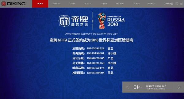 6月7日,距离世界杯开幕仅剩一周,最后一家亚洲区域赞助商“压哨”进场——国际足联当天宣布,帝牌(国际)有限公司正式成为俄罗斯世界杯亚洲区域赞助商,同时是全球首家商务正装品类的世界杯赞助商。