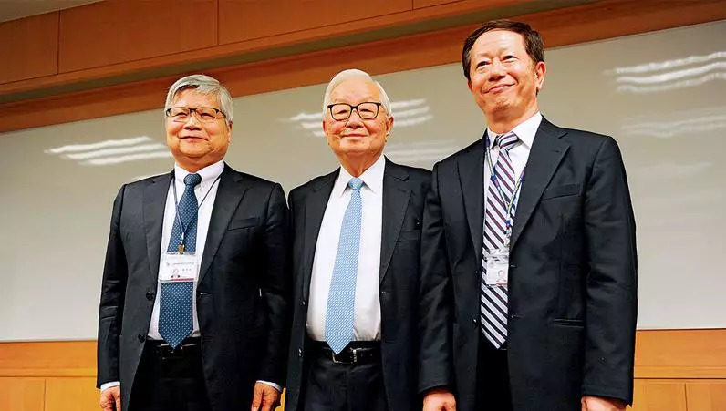 张忠谋与台积电“双首长”刘德音(右1)和魏哲家(左1)