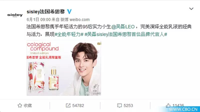 记者注意到,官宣发布后,微博有关#吴磊sisley法国希思黎首位品牌代言人#的话题已经形成。直至截稿之际,阅读数927万、讨论数12万,这一数字相比其它美妆品牌的小生代言话题关注,的确不算高。