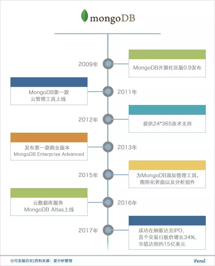 2017年,MongoDB成功在纳斯达克IPO,成为首个上市的NoSQL数据库公司,为整个NoSQL数据库市场注入了一剂强心剂。