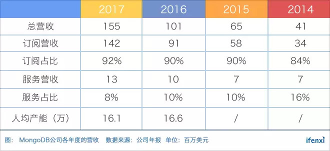 MongoDB营收由产品订阅以及服务两部分构成。