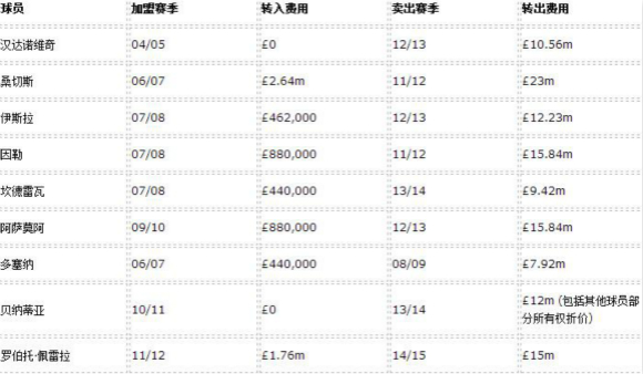 上表中这些日后闪耀足坛的9名球员一共花费了球队750万镑左右,最终却得到了令人乍舌的1.21亿英镑收入。当然这只是其中的一部分,他们还发掘了包括比埃尔霍夫、吉安和蒙塔里在内的多名球星。