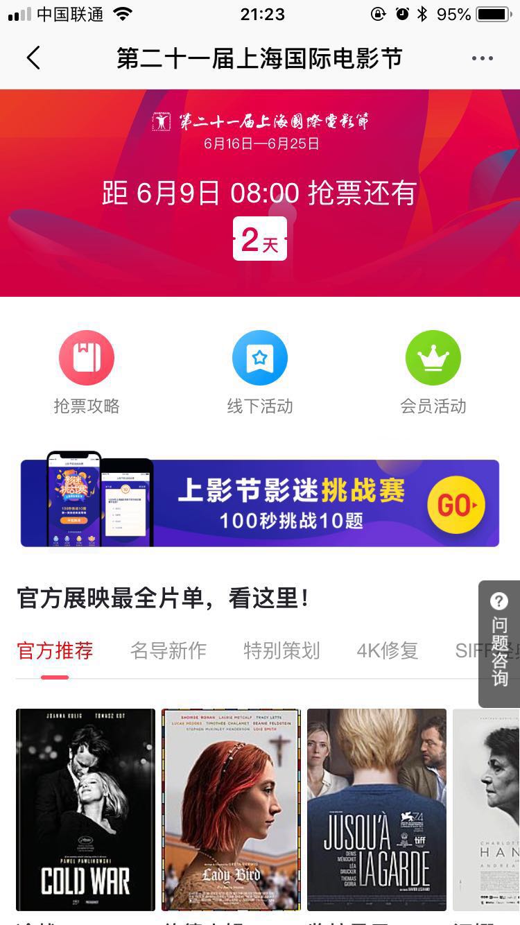 6月7日晚,2018年上海国际电影电视节官网公布本届电影节详细排片表。本届电影节约有500部左右的中外优秀影片,将分成不同主题的30个单元,在上海的45家影院作电影节放映。所有公映影片将于9日上午8点正式开票,与往年线上线下同步售票不同,今年所有展映售票将先于8点在淘票票线上开票,10点开始线下售票。