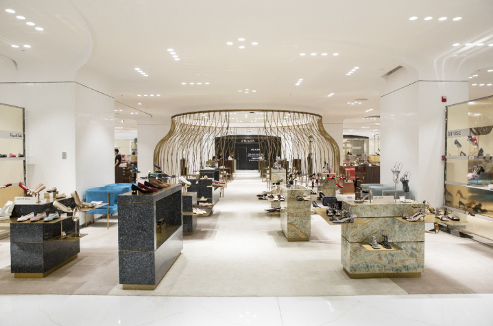 西安SKP在布局陈列上与北京SKP相同,按照商品品类来划分,且每个品牌的不同品类会分开陈列在不同的店铺。例如Prada的男装、女装以及鞋履被分为三个店铺。而同属Prada集团的Miu Miu在西安SKP内有成衣、配饰和鞋履综合店,同时还有一家鞋履专门店。该集团的Church’s则按男、女装分为两家店铺。这样算来,Prada集团在西安SKP内总共有7家店。