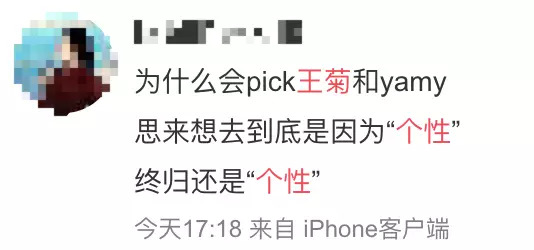 上面截取了普通网友的评论,从中我们可以看到,对于网民来说,他们对于庞麦郎、3unshine和王菊最直接的反应就是有“个性”——跟所属群体的格格不入。