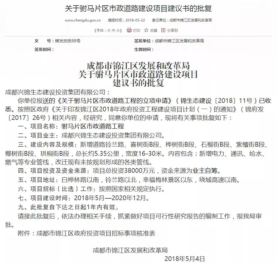 5月4日,锦江区发展与改革局就已经对这一项目的建设书进行了批复。