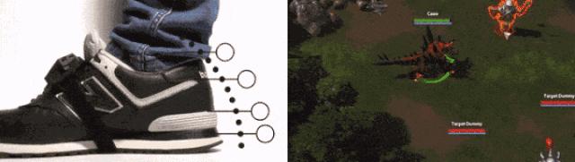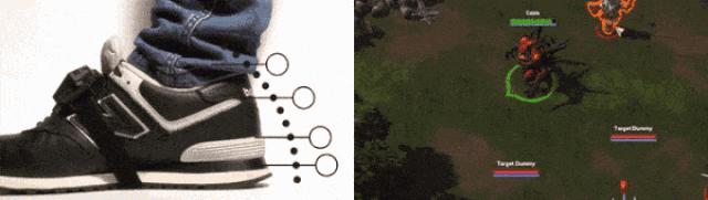 譬如英雄联盟里,后脚跟抬起的角度依次对应 QEWR 四键,大招连起砸死对方。