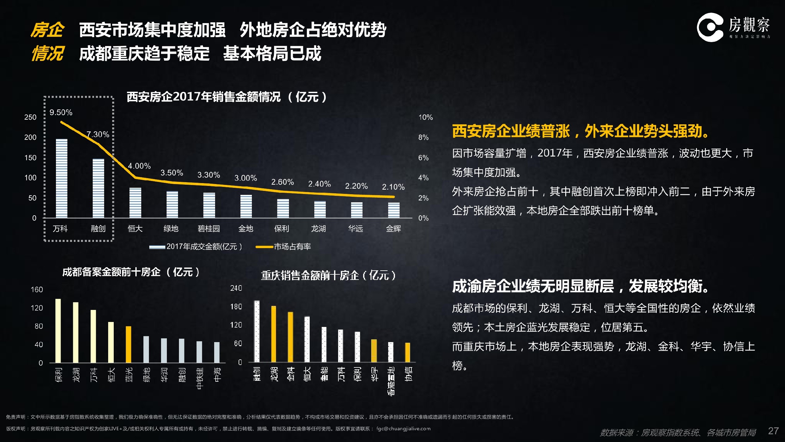 2017年“西成渝”销售前十房企