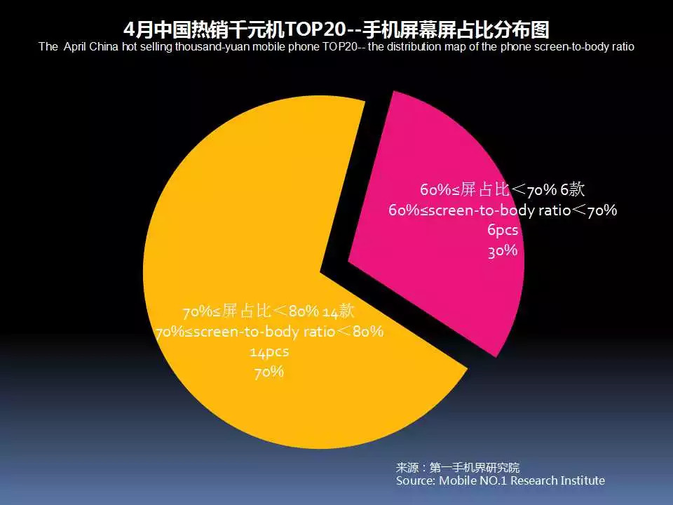 4月中国热销千元机TOP 20的全面屏手机出现了9款,分别是:OPPO A83、华为 畅享8、红米 5Plus、OPPO A1、vivo Y75、vivo Y71、荣耀 畅玩7A、荣耀 畅玩7C、荣耀 9 青春版,这也标志着千元机市场将在2018年普及全面屏概念。