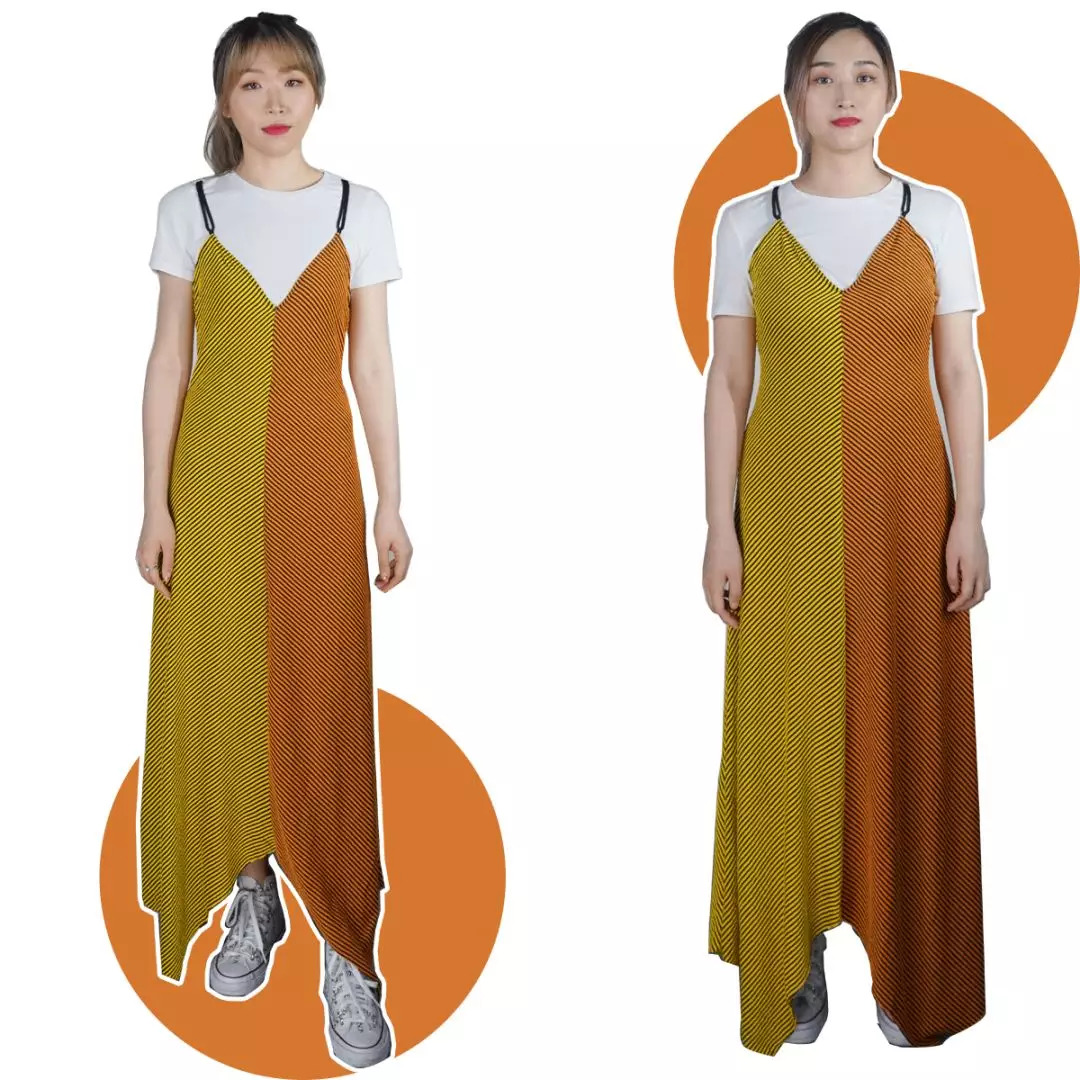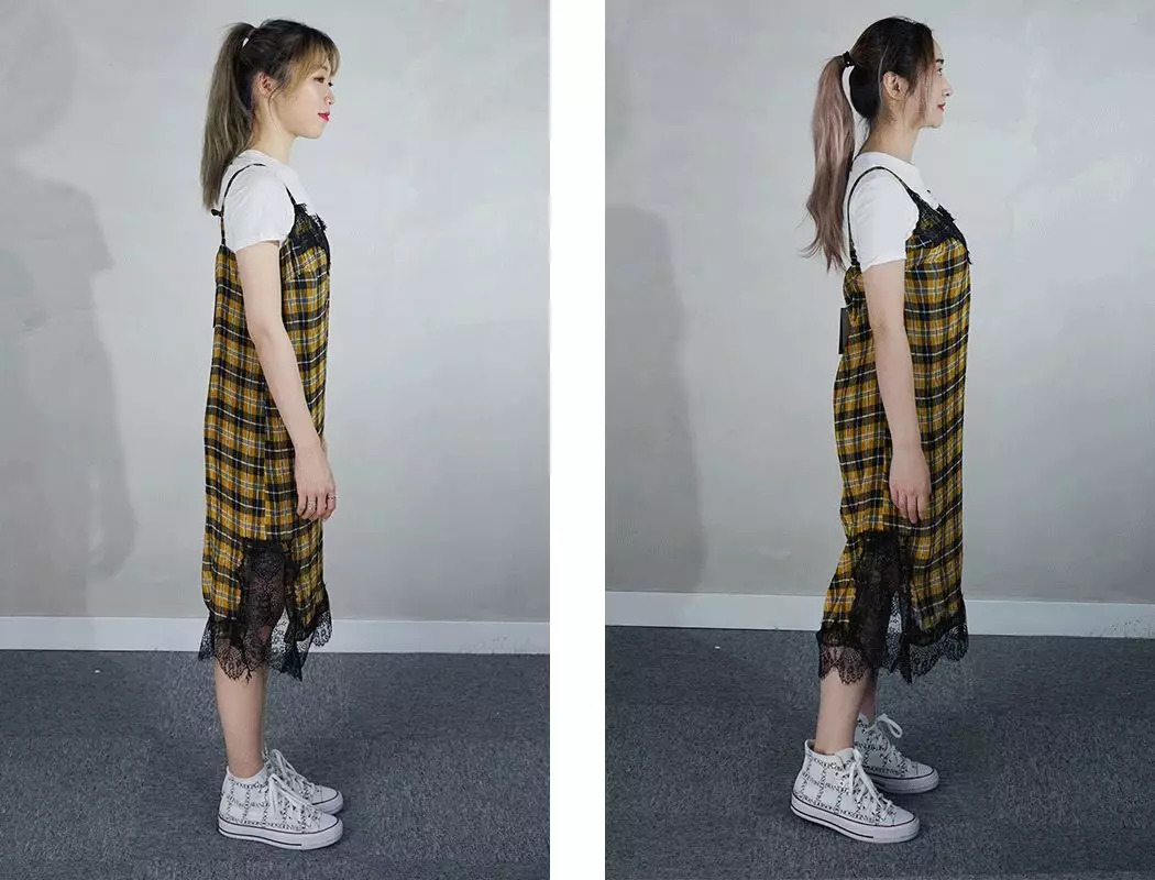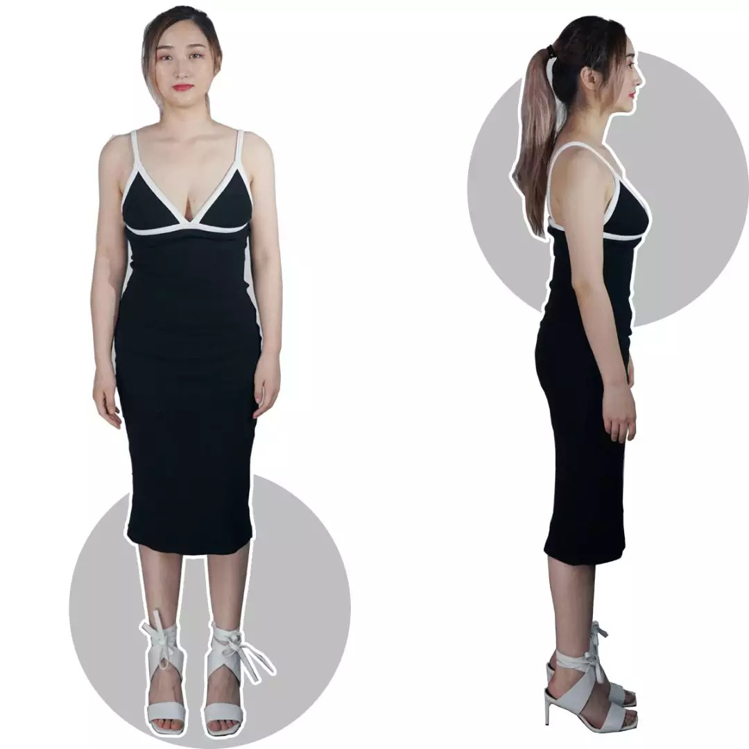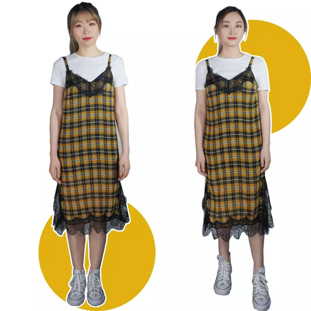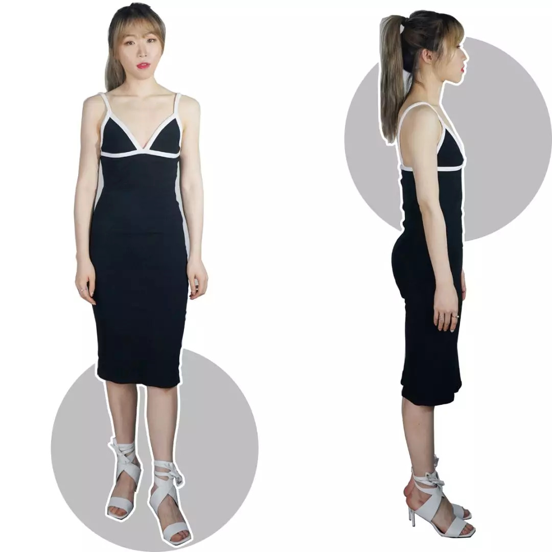 如果你觉得是裙子款式不对的话,我们换个有腰身的吊带裙试试。
