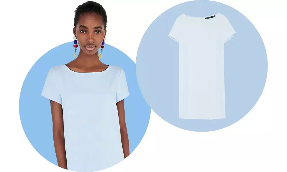 印花款也要谨慎选择,因为容易显得把你的胸部包得严严实实的,不如简单的纯色收腰款式显身材。