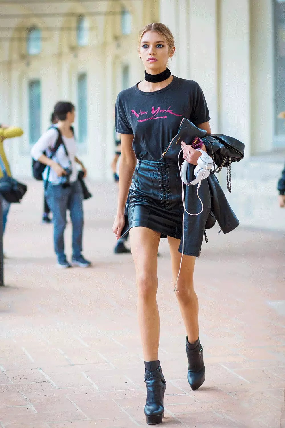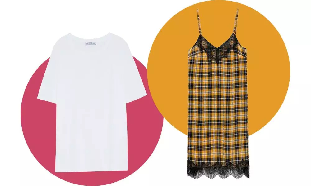 本轮,小胸胜。大胸要想看起来时髦一点,尽量别穿高腰裙,并且选没有印花的tee。