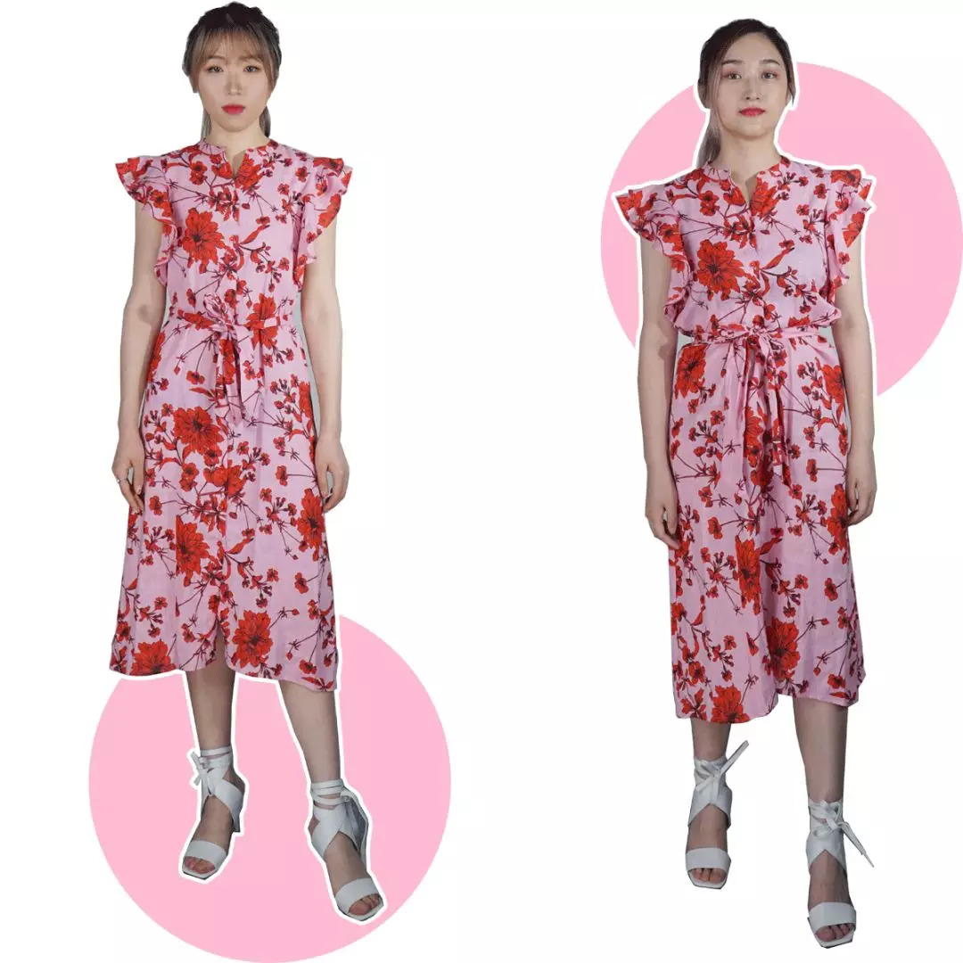 感人,本轮平手!虽然印花让人膨胀,但荷叶袖对大胸平胸都友好。平胸的看起来多点女人味。大胸的能遮掉胸部,侧面的死亡视角也看不出大小,手臂还显瘦。可以有。