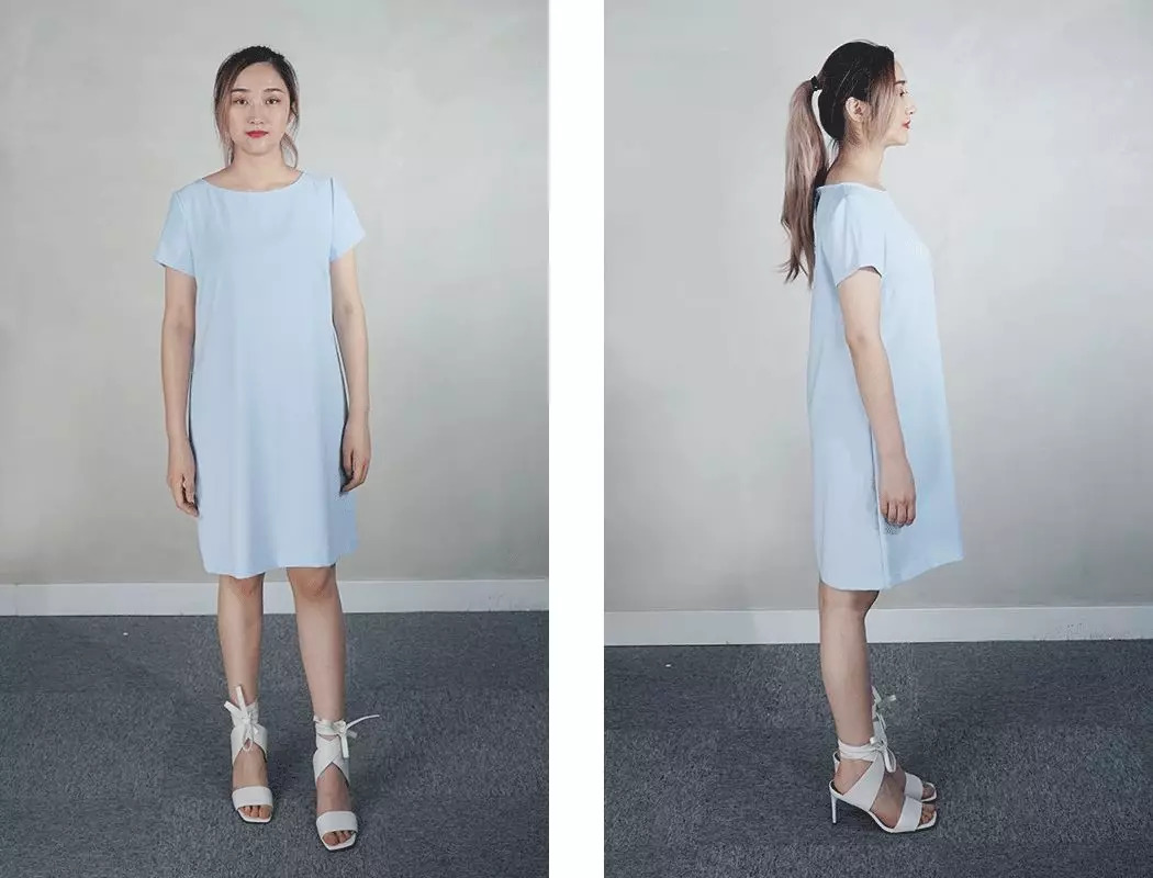 直筒裙没有腰身设计,所以正面侧面容易一样的,宽。胸部稍微大一点的,可能就会在地铁上被人让座。