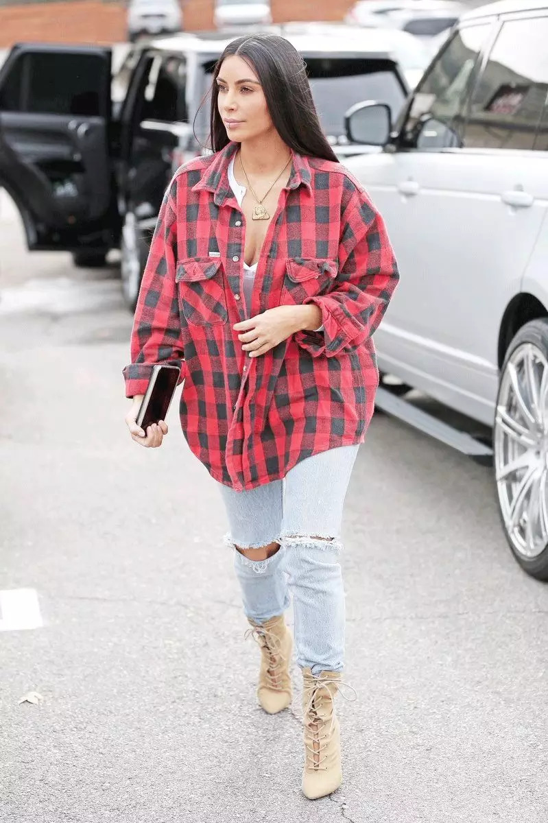 但没想到这种搭配在大胸身上,根本不成立。正面看,格子被撑到变形。