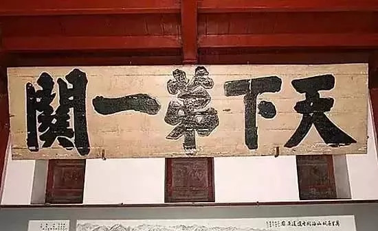 典故:此匾乃明代著名书法家萧显所书。其匾长5米多、高1.5米,每个字都是1米有余,其大自不待言;它从东向西逐渐增大,在笔划的处理上,把第一的“第”字改写成草字头的“苐”,使笔划减少,视觉上的分量减轻,让繁体的“关”字笔划凝重、粗壮有力,牢牢地压住似乎将要翘起的城楼西端。