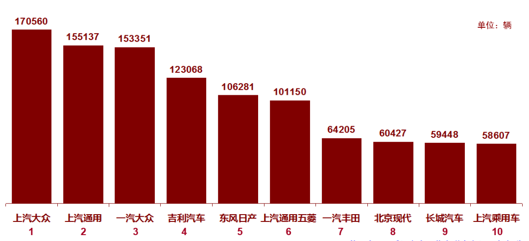 在全国乘用车联合会6月8日发布的《5月乘用车销量数据和狭义乘用车销量数据》厂商销量排名中,吉利汽车排名第四,仅落后于上汽大众、上汽通用和一汽大众。长城汽车位列第九,只比排名第十的上汽乘用车多出841辆。