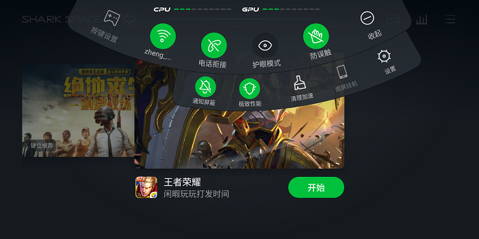 玩家们拨动手机侧面的SHARK键即可进入Shark Space。在Shark模式下,玩家永远不需要担心游戏进程受到通知和来电的干扰,黑鲨游戏手机会自动清理内存,并屏蔽通知和来电,成为一台性能全开的“游戏机”。