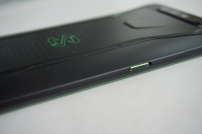 从背部开始,黑鲨游戏手机逐渐展示出了其作为游戏手机的优化设计。
