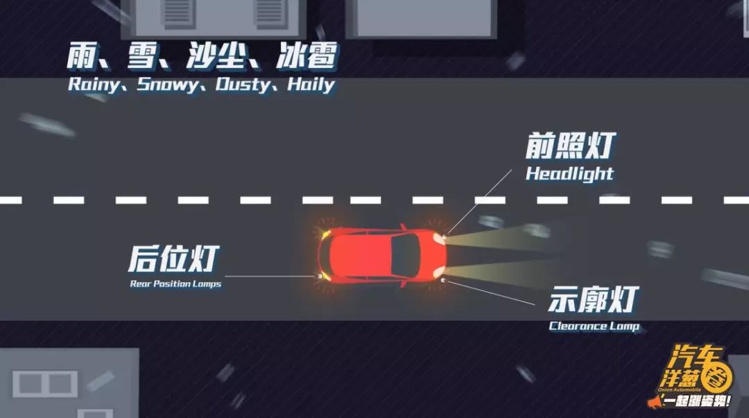法律规定:机动车在雨、雪、沙尘、冰雹等情况下行驶时,通常只需开启前照灯、示廓灯和后位灯。雾天行驶,需开启雾灯和危险报警闪光灯。