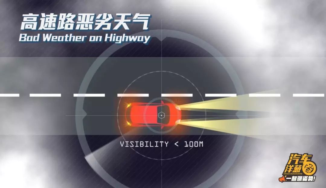 不过,在高速公路行驶时,如果由于恶劣天气造成能见度小于100米,就可以同时开启上述所有灯光,并从最近的出口尽快驶离高速公路。