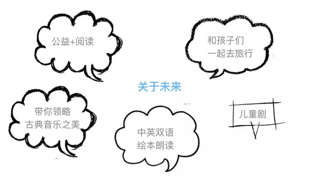 这是一个特别简单的关于未来的思考:“雪纯念书”将来可以做什么,有很多是我们已经尝试过的事情。今天来的路上,我看到这页PPT时,自己都乐了。这个设想都是可以伸手就能摸到的事情。比如说试过,或者想试就可以试的,还不是设想,设想的圈子应该比这个大,比这个高,还要再大,才是真的未来设想。无论从作品的内容角度,还是从商业操作的角度,应该都是这样,这只是我很浅的思考。