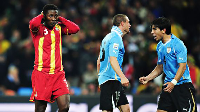 与这份列表中的其他冤家有所不同,因为由这两位球员导致的这次事件,其实并没有他们的直接参与。无论2010年世界杯上苏亚雷斯阻挡加纳队进球的那个手球是否是出自于直觉,还是只是单纯的作弊行为,关于这个球的争论还是延续了8年时间。