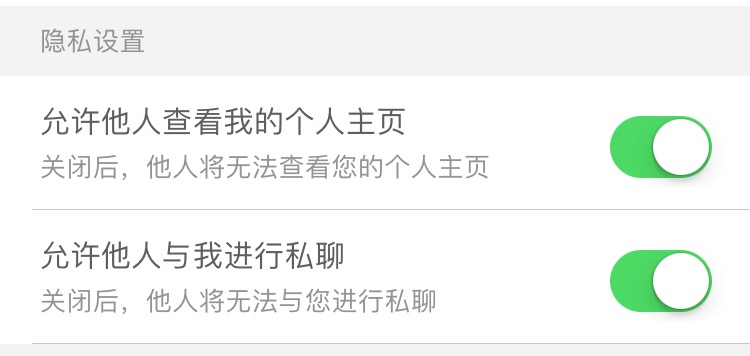 不过此关闭入口比较隐蔽,需要点击个人中心-头像-右上角编辑,才能看到关闭页面。在用户更新APP后,隐私设置的这两个选项默认是开启状态,并且没有提示用户新增了这项功能。