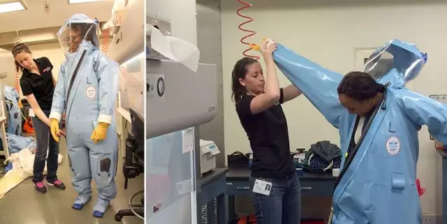 图4. 由美国食品药品监督管理局提供的生物安全第四级实验室职员训练照(图片来源:The U.S. Food and Drug Administration on Visual hunt)