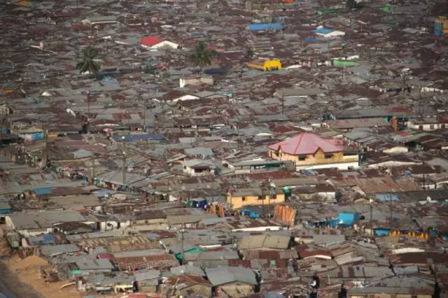 图7. 曾经爆发严重埃博拉疫情的利比里亚村镇,病毒在这样居住密度极高的简陋棚户区很容易大规模流行(图片来源:美国疾病预防及控制中心)