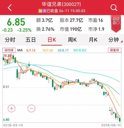 截至周一收盘,华谊兄弟股价跌幅达3.25%,创五年新低(前复权价格);自3月下旬此轮跌势启动以来累计下跌32.35%。