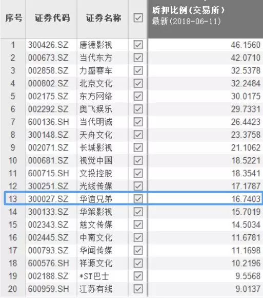 事实上,华谊兄弟的质押比例并不高