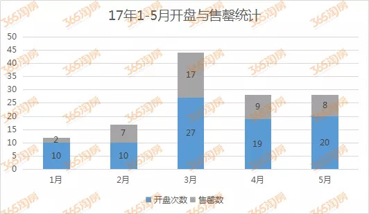 据365淘房数据中心统计显示:2018年徐州1-5月共加推58次,其中42次推盘宣告售罄。相较于2017年的上半年(1-5月加推86次,43次宣告售罄)的开盘数据来说,2018年虽然推盘次数不多,但“日光”的频率可谓相当之高了。