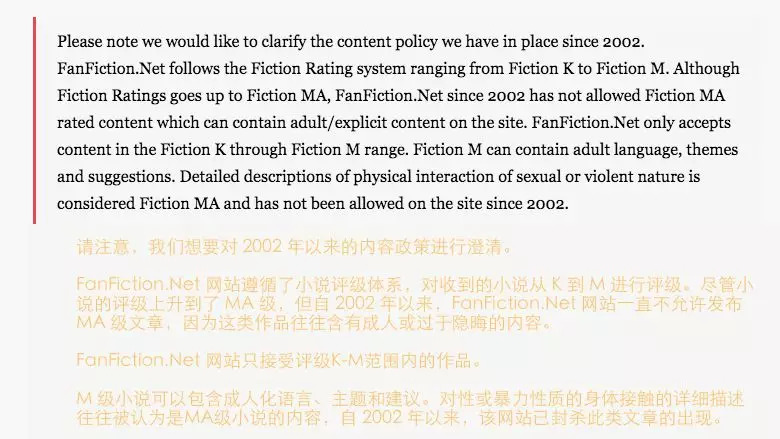 2012年,fantion.net网站管理员从该网站上清除了逾6万篇“成人”小说。《赫芬顿邮报》(Huffington Post)当时在头版刊登了这样一条消息: