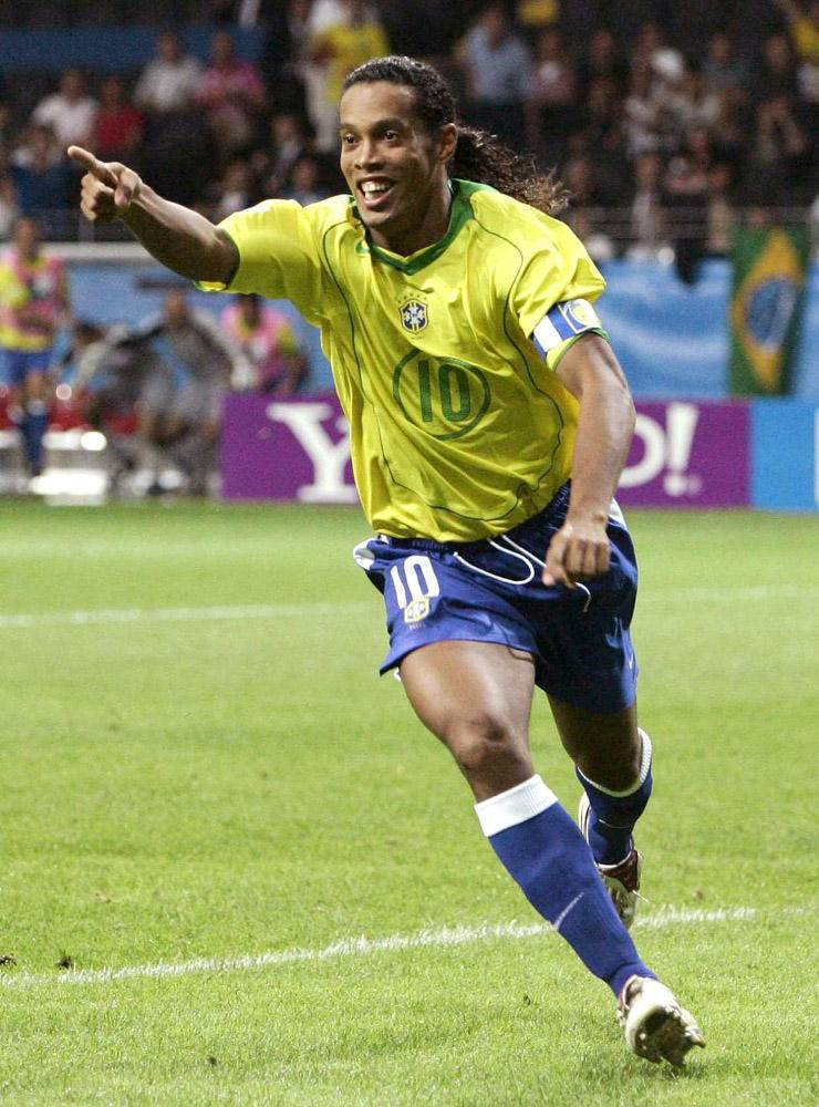 小罗的成名之战是2002年世界杯,巴西对英格兰,他几乎以一己之力战胜了英格兰黄金一代。第一个进球,他从中圈带球,用一个假动作晃倒了当时世界数一数二的左边卫阿什利·科尔,杀向禁区,吸引两名中卫的注意力后,助攻里瓦尔多得分。第二个进球更是神奇,巴西队在前场右路获得任意球。因为距离球门太远,角度太偏,这本是一个没有太大威胁的球。但小罗主罚的球划出了一道不可思议的弧线,在越过后防线后,迅速下坠。英格兰队的顶级门将希曼和那个球一起,坠入了球网。英格兰不仅输了比赛,希曼也自此一蹶不振,状态迅速下滑,进入了职业生涯后半段。