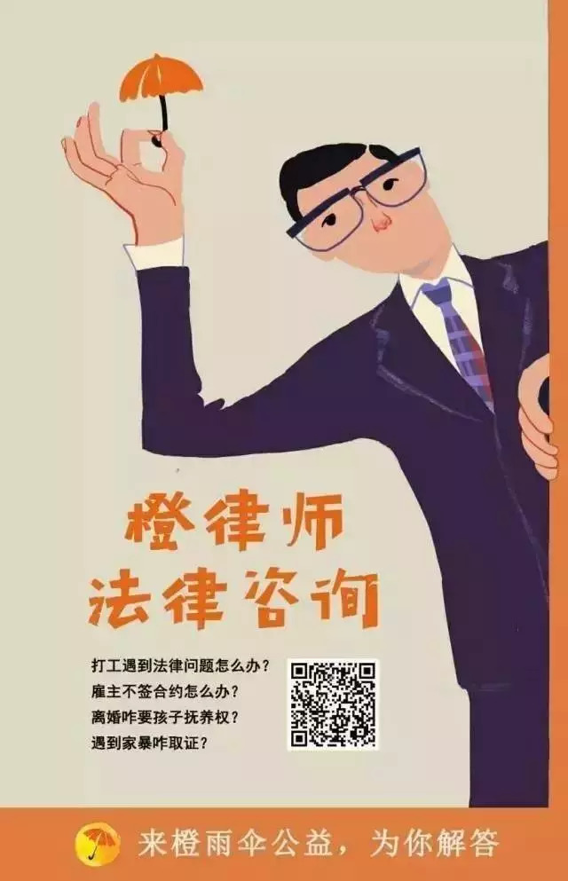 我知道你很无助也很着急,如果你有更多关于婚姻、家暴、情感、性侵等纠纷和疑问,需要律师的法律建议,欢迎关注我们,给橙雨伞公益的微信后台留言,尽可能详细说明自己的情况,我们将选取问题转接给橙律师,为你提供帮助。